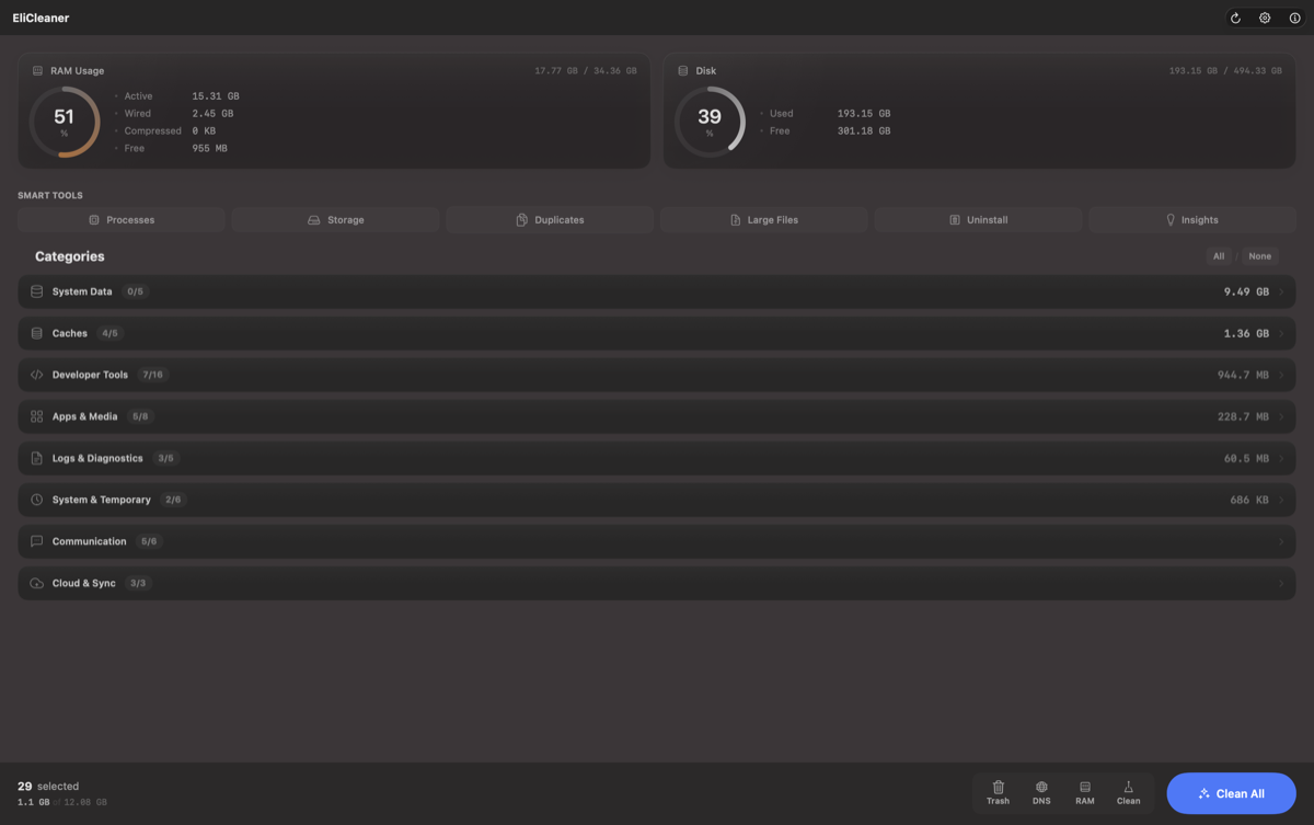 EliCleaner unterstützt die neuesten macOS-Versionen und ist sowohl für Intel- als auch Apple-Silicon-Macs (M1, M2, M3, M4) optimiert.